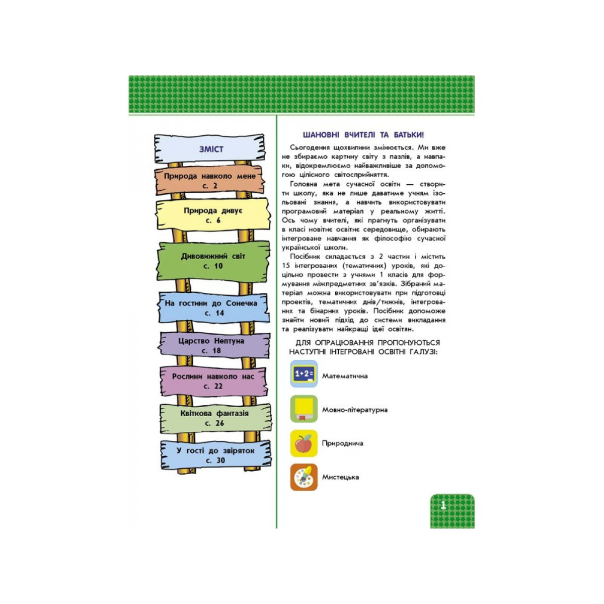 Посібник складається з 2 частин і містить 15 інтегрованих (тематичних) уроків, які доцільно провести з учнями 1 класів для формування міжпредметних зв“язків. Зібраний матеріал можна використовувати при підготовці проектів, тематичних днів/тижнів, інтегрованих та бінарних уроків.