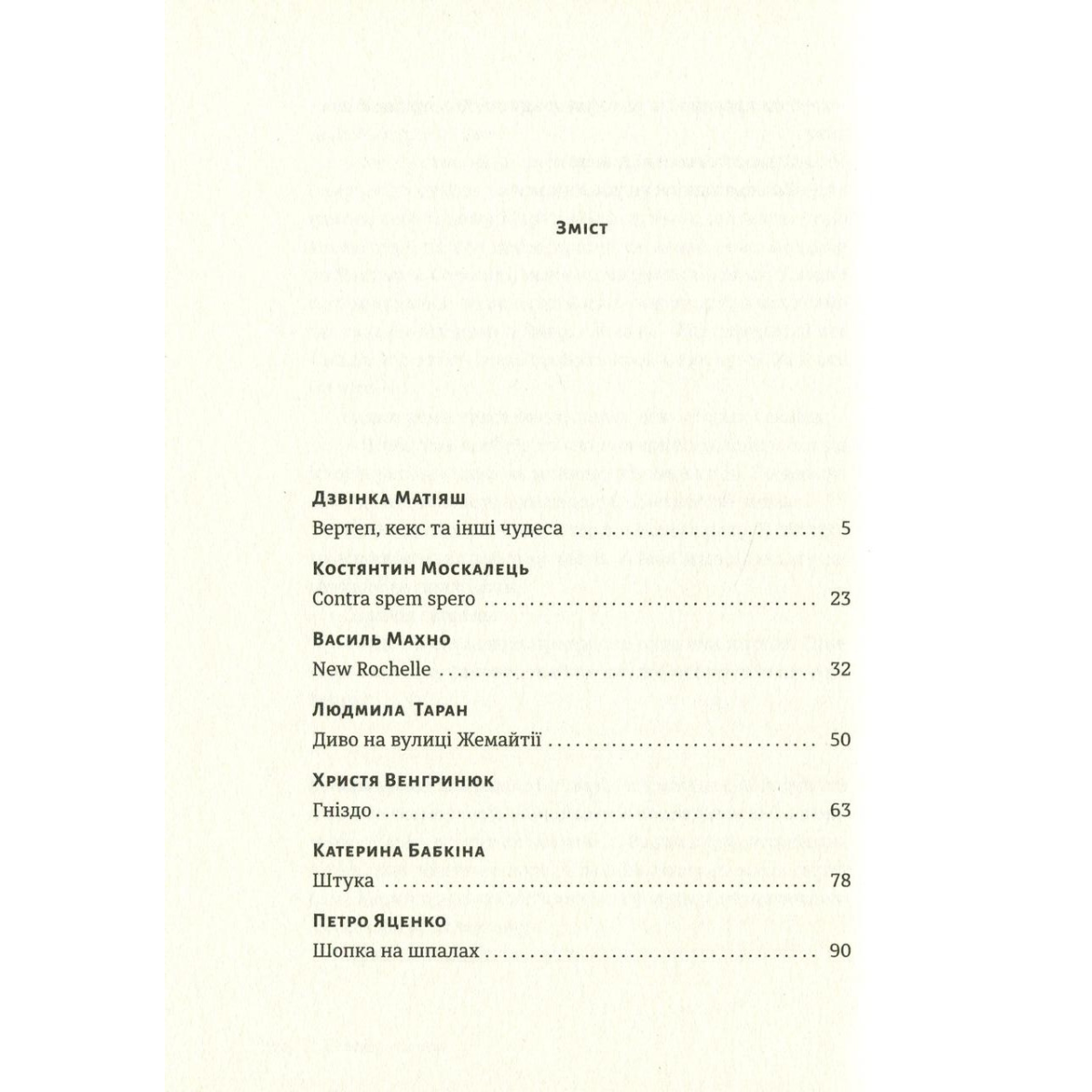 До книги увійшли історії від таких авторів: Катерина Бабкіна, Дорж Бату, Христя Венгринюк, Надійка Гербіш, Богдан Коломійчук, Богдана Матіяш, Дзвінка Матіяш, Василь Махно, Катерина Міхаліцина, Костянтин Москалець, Ірина Савка, Ірина Славінська, Людмила Таран, Петро Яценко. Упорядниця Ольга Ренн.