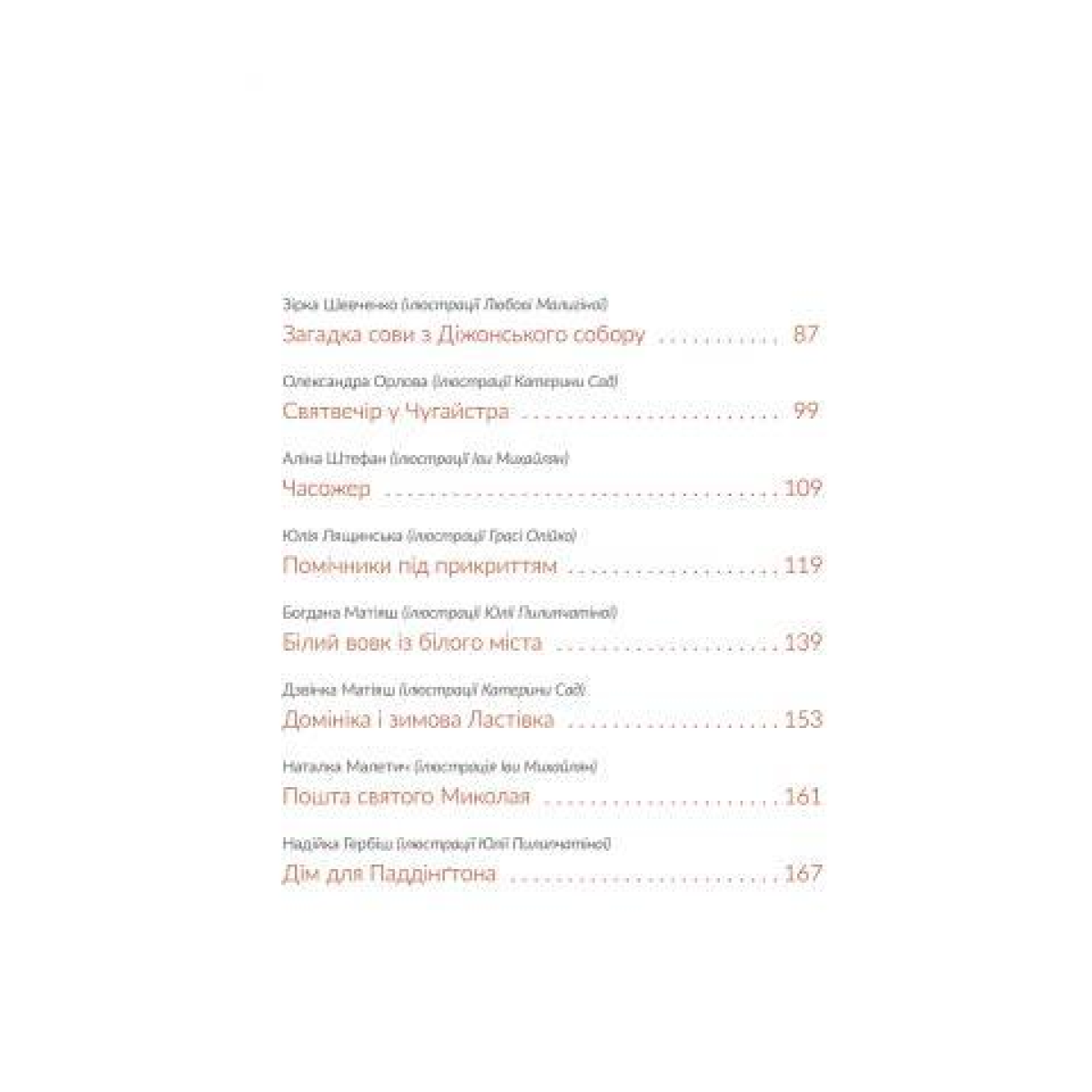 Ілюстратори: Іва Михайлян, Альона Ткач, Грася Олійко, Ростислав Попський, Арсен Джанікян, Катерина Сад, Марта Кошулінська, Наталка Гайда, Інна Руда, Юлія Піліпчатіна, Любов Малигіна.