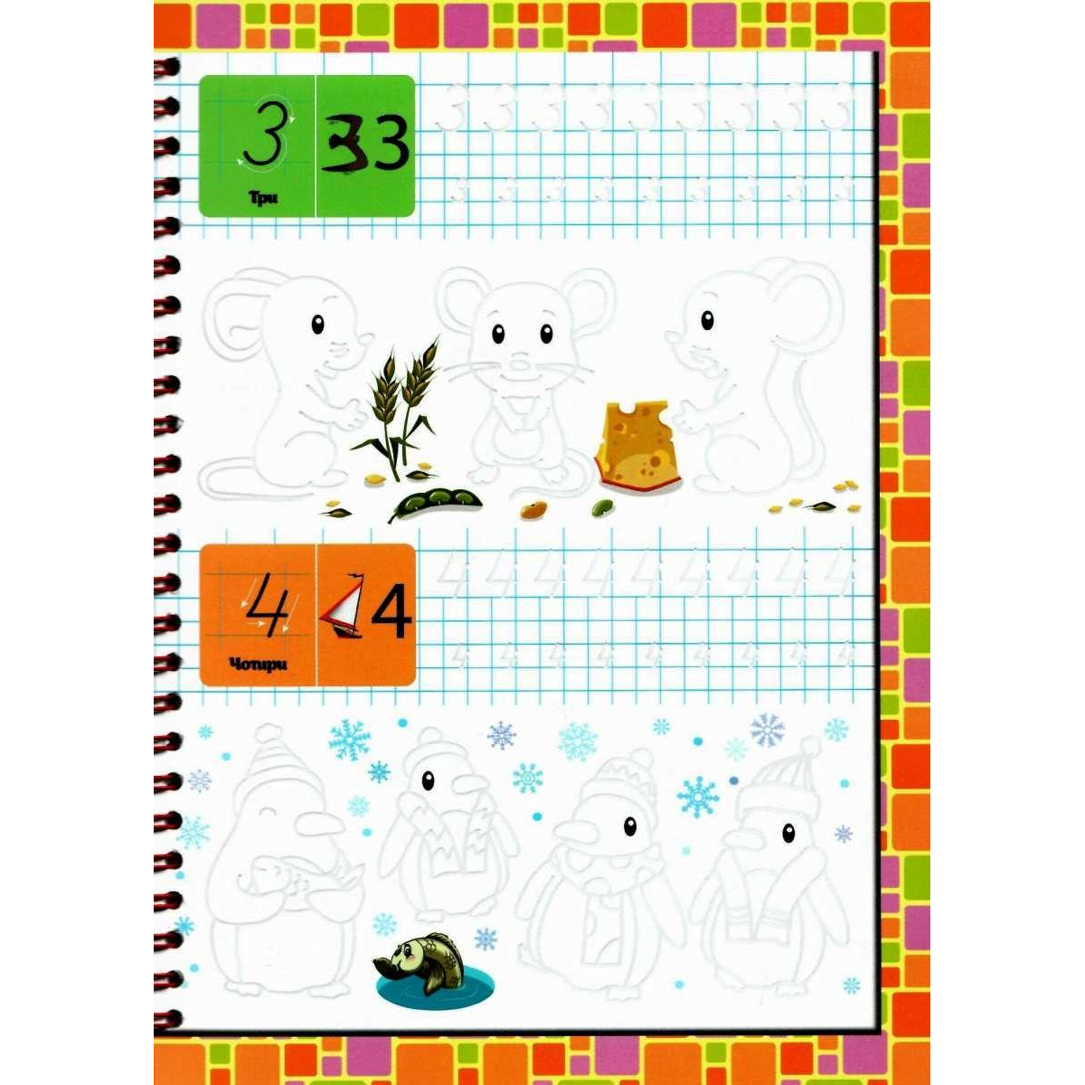 Багаторазові прописи з канавкою ЦИФРИ (червоний)