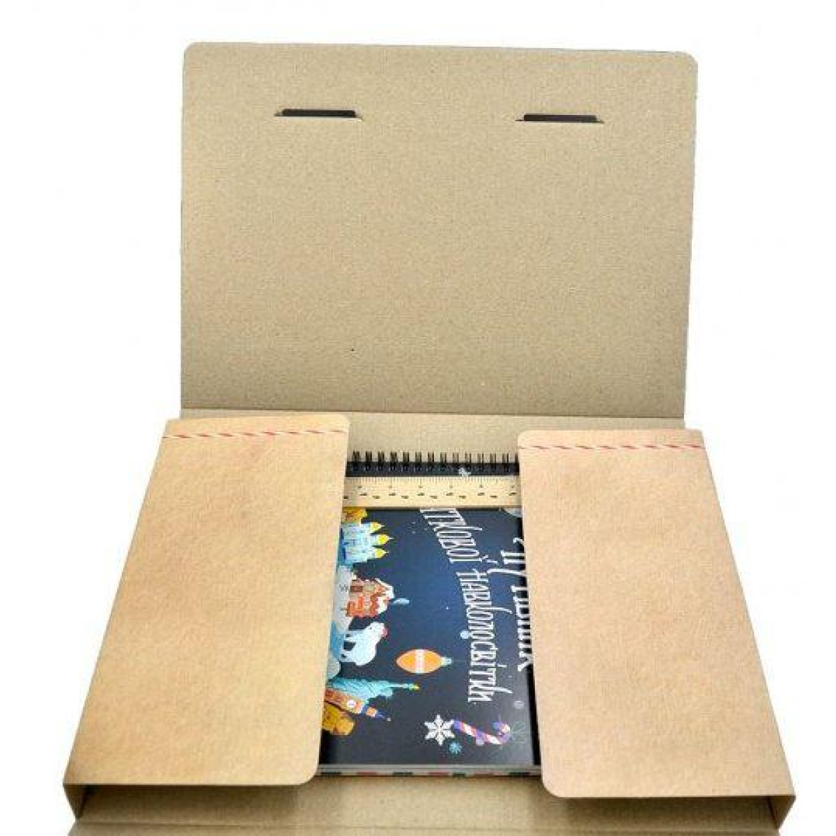 - Блокнот мандрівника, книжка яка містить: 20 карт країн, якими опікуються дивотворці, 20 листів з квест-загадкою “Знайди країну“ від святого Миколая, Санта-Клауса, Дадабе Ноеля, Салавециса, Товліса Бабуа та інших дивотворців; зашифроване повідомлення, яке є останнім випробуванням зимового квесту, та ще легенду квесту — розповідь про таємну організацію «Santa