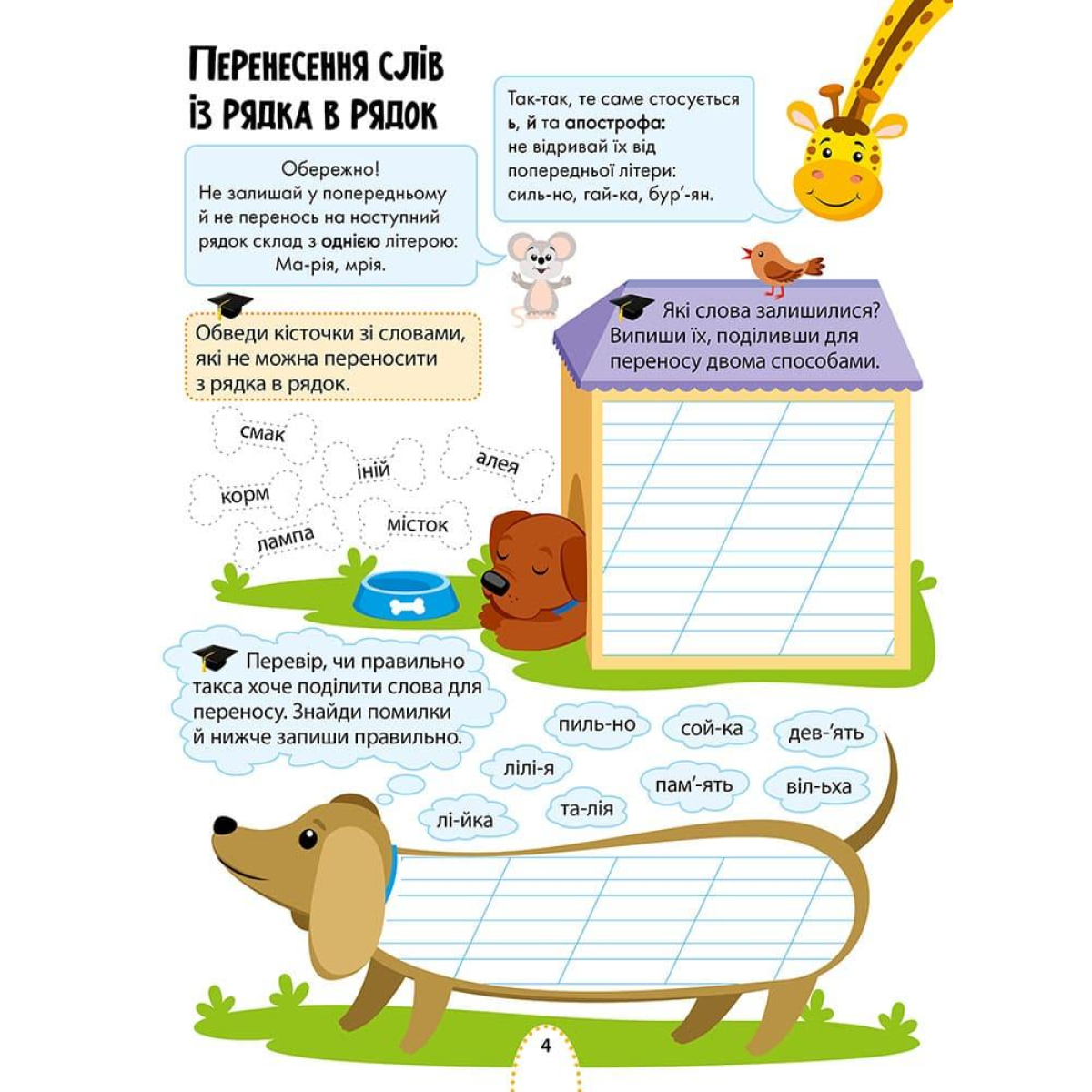 Непосидючі герої зошита — миша та жирафа — не можуть ні дня без пригод. Вони пізнають світ і разом з тим навчаються. Із веселими друзями ваш школяр швидко та залюбки оновить у пам“яті шкільну програму та опанує нові знання. Миша та жирафа надаватимуть йому підказки з найважливіших та найскладніших питань і доступно пояснюватимуть нові теми. Посібник містить усі необхідні теми з предмета в ігрових завданнях, завдяки чому ваш школяр точно не занудьгує.