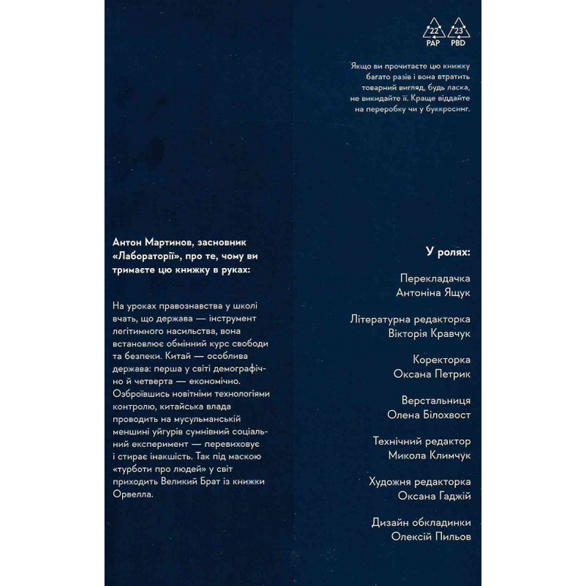 Автор доводить, що саме зручність смартфонів прирекла китайські нацменшини на катастрофу, і показує, що ця технологія використовується у всьому світі, продається технологічними компаніями від Пекіна до Сіетла, створюючи нові форми несвободи.
