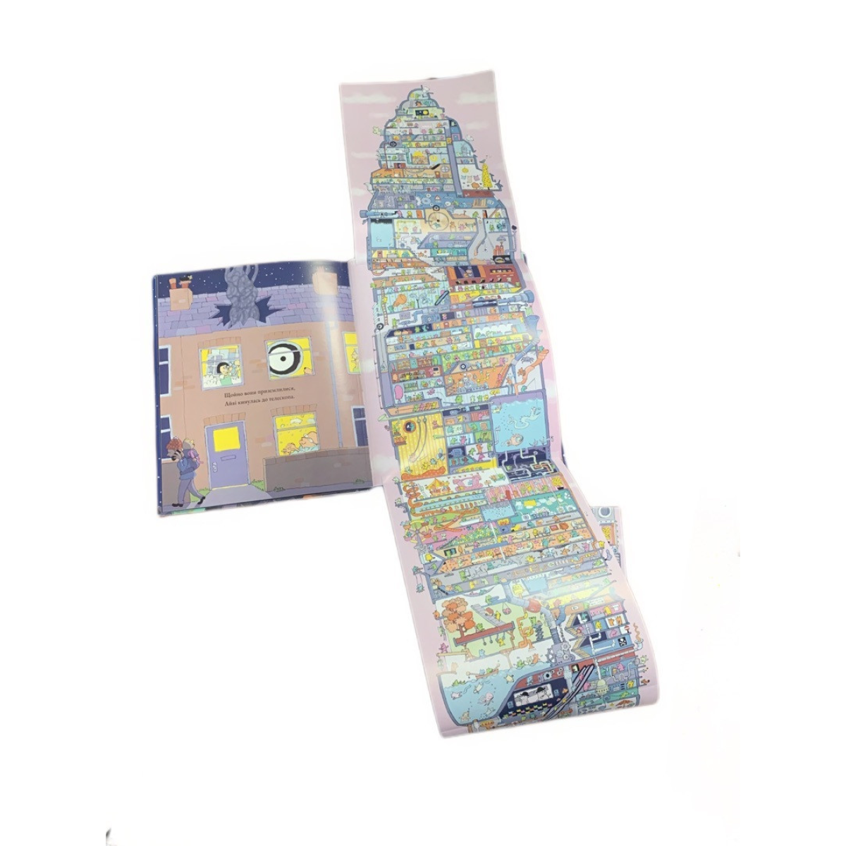 У книзі є ВЕЛИЧЕЗНА вкладка, у якій діти зможуть детально розглянути всі 100 поверхів ракети.