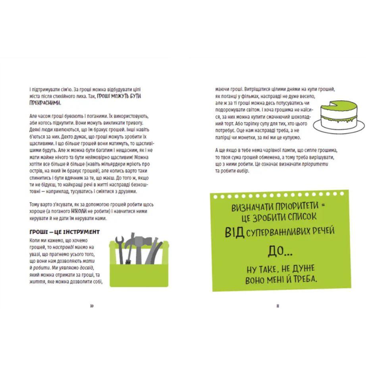 Вони мають БАГАТО назв і бувають дуже різні за формою, але тисячі років ГРОШІ використовують у всьому світі, аби щось купувати, щось будувати і змінювати життя. Про що ти думаєш, уявляючи гроші? Про піраміди із золота під саму стелю? Про купівлю омріяної гітари? Чи про заможне життя, як у багатих суперзірок? Так, грошам усе це під силу, але спершу треба зрозуміти, як це працює — звідки беруться і що з ними робити. Тільки-но про це дізнаєшся, точно зрадієш, і, можливо, нарешті візьмеш до рук омріяну гітару, а через роки заживеш, як давно собі намріяв. Може здатися, що до цього ще ДУЖЕ далеко, але розвивати навички користування грошима (і знати, що робити, коли справи йдуть не дуже добре) — правильний вектор руху. Ось тут і з'являється ця книжка!