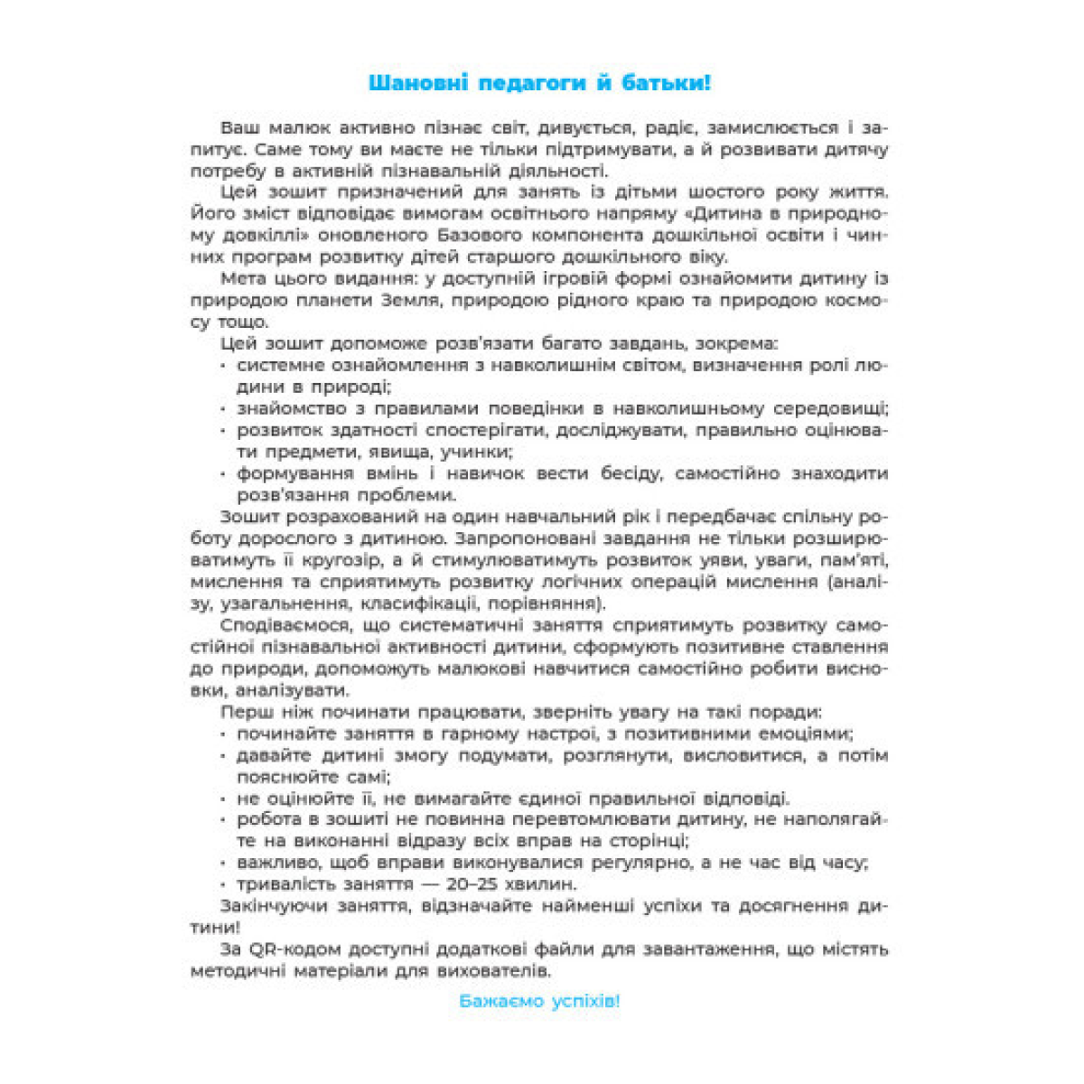Посібник містить цікаві різноманітні завдання, що допоможуть ефективно організувати пізнавальну діяльність дітей шостого року життя, сприятимуть закріпленню та розширенню знань про природне довкілля.
