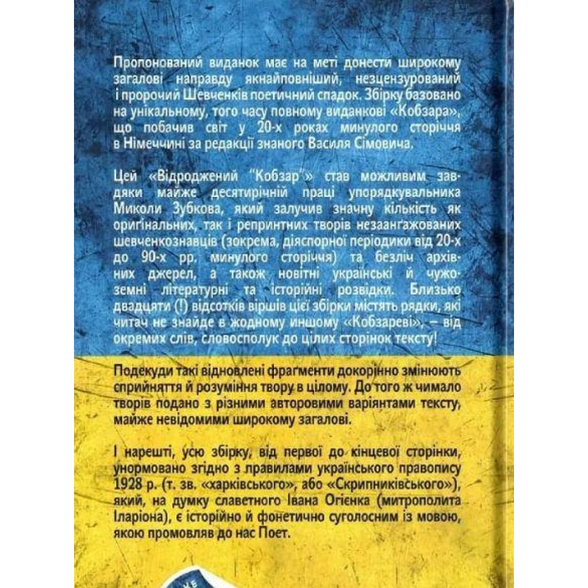 Пропонований виданок має на метi донести широкому загаловi направду якнайповніший, незцензурований і пророчий Шевченків поетичний спадок. Збірку базовано на унікальному, того часу повному виданковi «Кобзара», що побачив світ у 20-х роках минулого сторіччя в Німеччині за редакцiї знаного Василя Сімовича. Цей «Відроджений "Кобзар"» став можливим завдяки майже десятирічній праці упорядкувальника Миколи Зубкова, який залучив значну кількість як оригінальних, так і репринтних творів незаангажованих шевченкознавців (зокрема, дiяспорноï перiодики від 20-х до 90-х рр. минулого сторiччя) та безліч архівних джерел, а також новітні українські й чужоземні літературні та iсторiйнi розвідки. Близько двадцяти вiдсоткiв вiршiв цiєї збірки містять рядки, які читач не знайде в жодному іншому «Кобзареві», – від окремих слів, словосполук до цілих сторінок тексту! Подекуди такі відновлені фрагменти докорінно змінюють сприйняття й розуміння твору в цілому. До того ж чимало творiв подано з різними авторовими варiянтами тексту