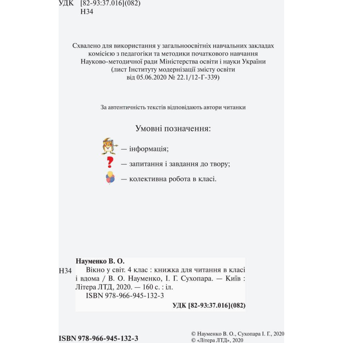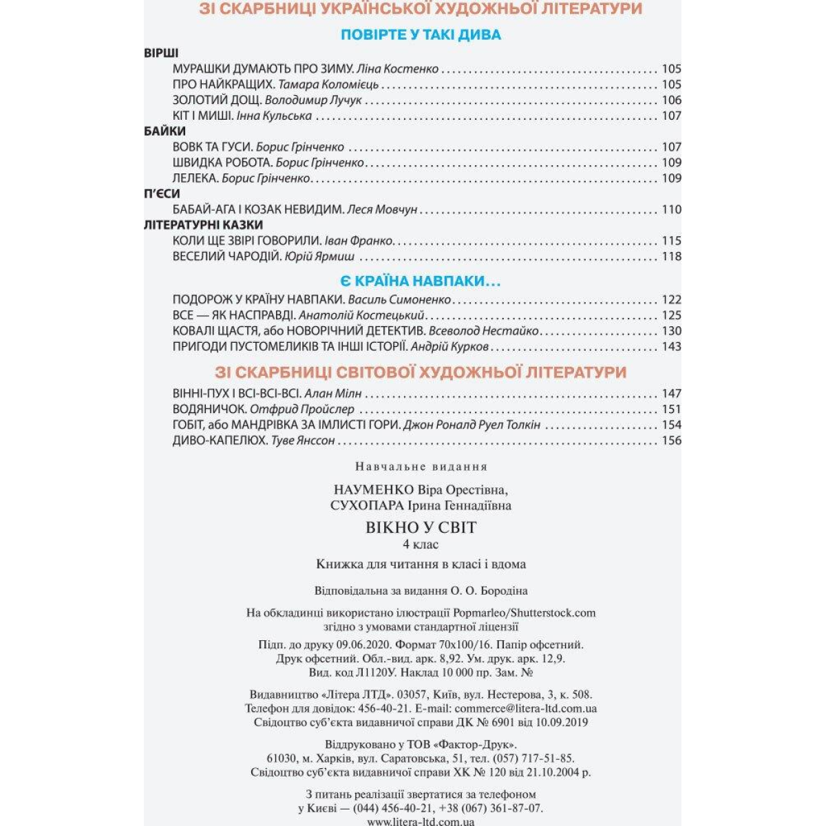 НУШ Читання 4 клас. Читанка. Вікно у світ. Новий правопис/ В.О Науменко, І.Г. Сухопара (9789669452283)