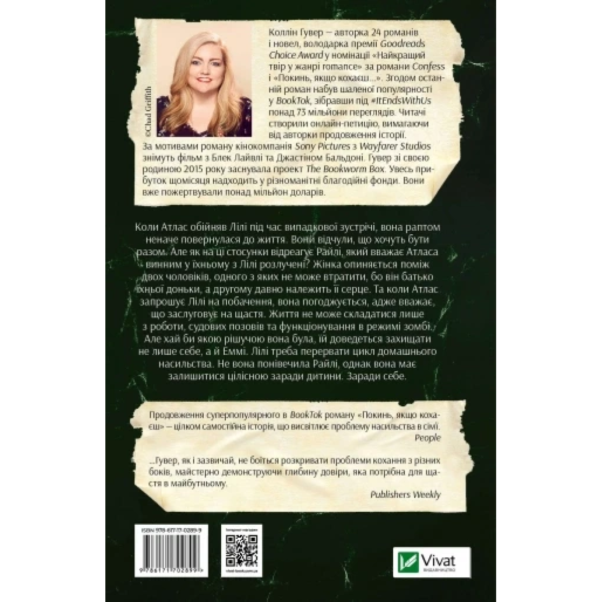 Авторка застерігає своїх читачок та читачів від потрапляння до тенет аб’юзивного кохання. У формі захопливої художньої оповіді Коллін Гувер відверто говорить про емоційні гойдалки, привабливість аб'юзерів, гру на емпатії та жалості й ґазлайтинг.