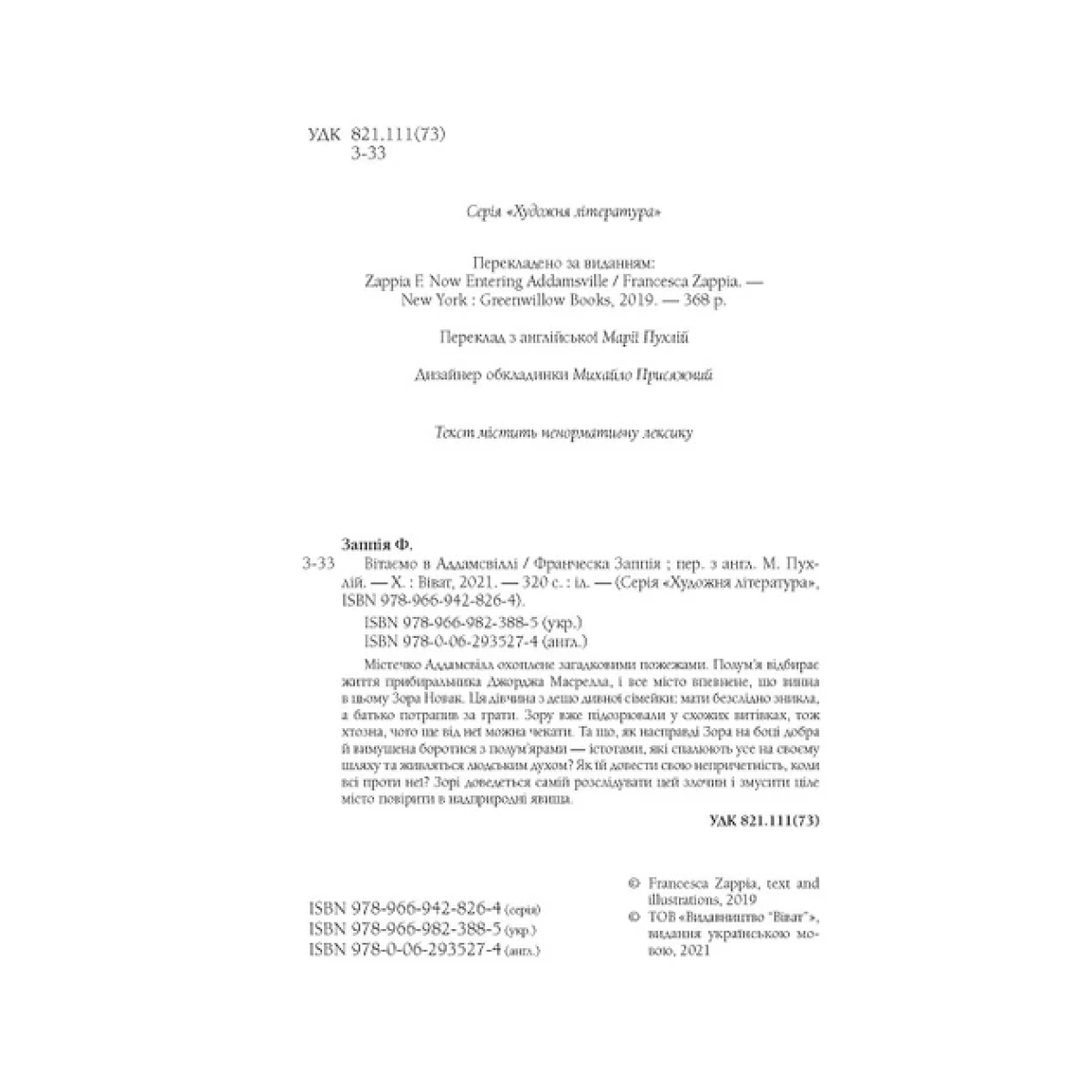 Книга Вітаємо в Аддамсвіллі / Франческа Заппія (українською)