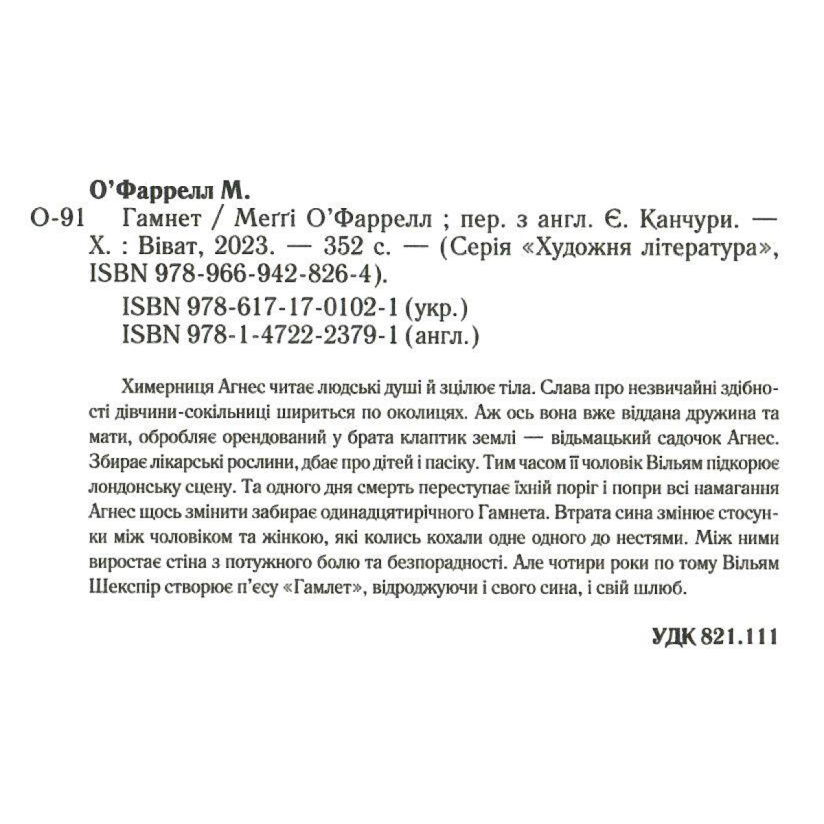 Книга Гамнет / Меґґі О’Фаррелл (українською)