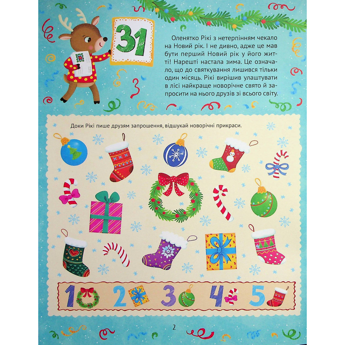 Новорічний квест. Адвент календар з кольоровими наліпками. Пуляєва Альона (українською мовою)