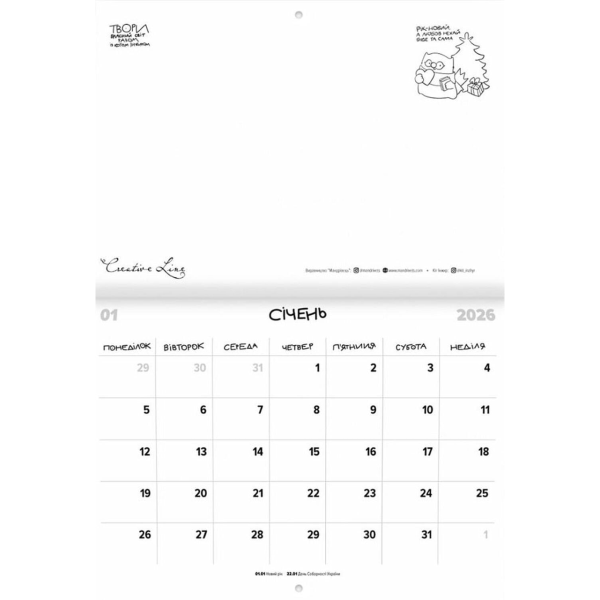 Календар кота Інжира на 2025 рік (Букви)