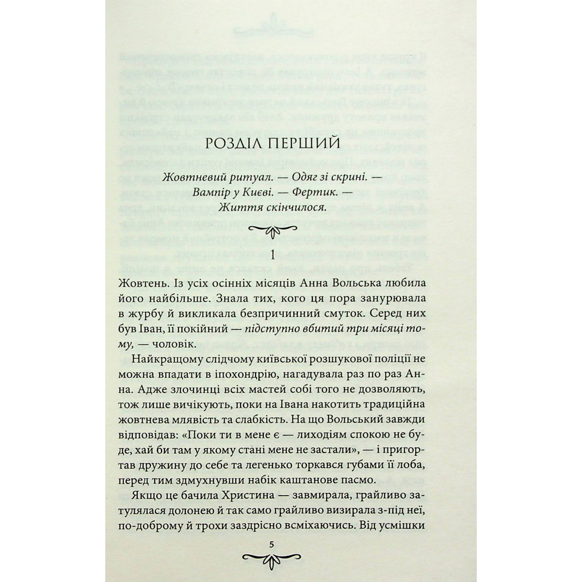Любов затьмарює розум. У цьому переконується Анна Вольська, дізнавшись про закоханість Христі, своєї відданої помічниці. Анна підозрює, що на недосвідчену дівчину полює задля забави цинічний світський спокусник. Однак незабаром викритий залицяльник сам стає жертвою київських вампірів — так охрестив таємну спільноту друг Анни, репортер Гліб Коваленко. Анна починає розслідування — і вже перший крок ставить її разом із командою поза законом. Чому київська поліція гальмує слідство? Як слуги закону пов’язані з ритуалами тих, кого називають вампірами? І невже ці ритуали не злочин, а прогресивні для початку ХХ століття медичні практики? Це лише частина запитань, на які шукають відповідей сищики-аматори. До того ж небезпечне слідство ще більше зближує молоду вдову Анну і Гліба, який давно не приховує своїх почуттів до неї...