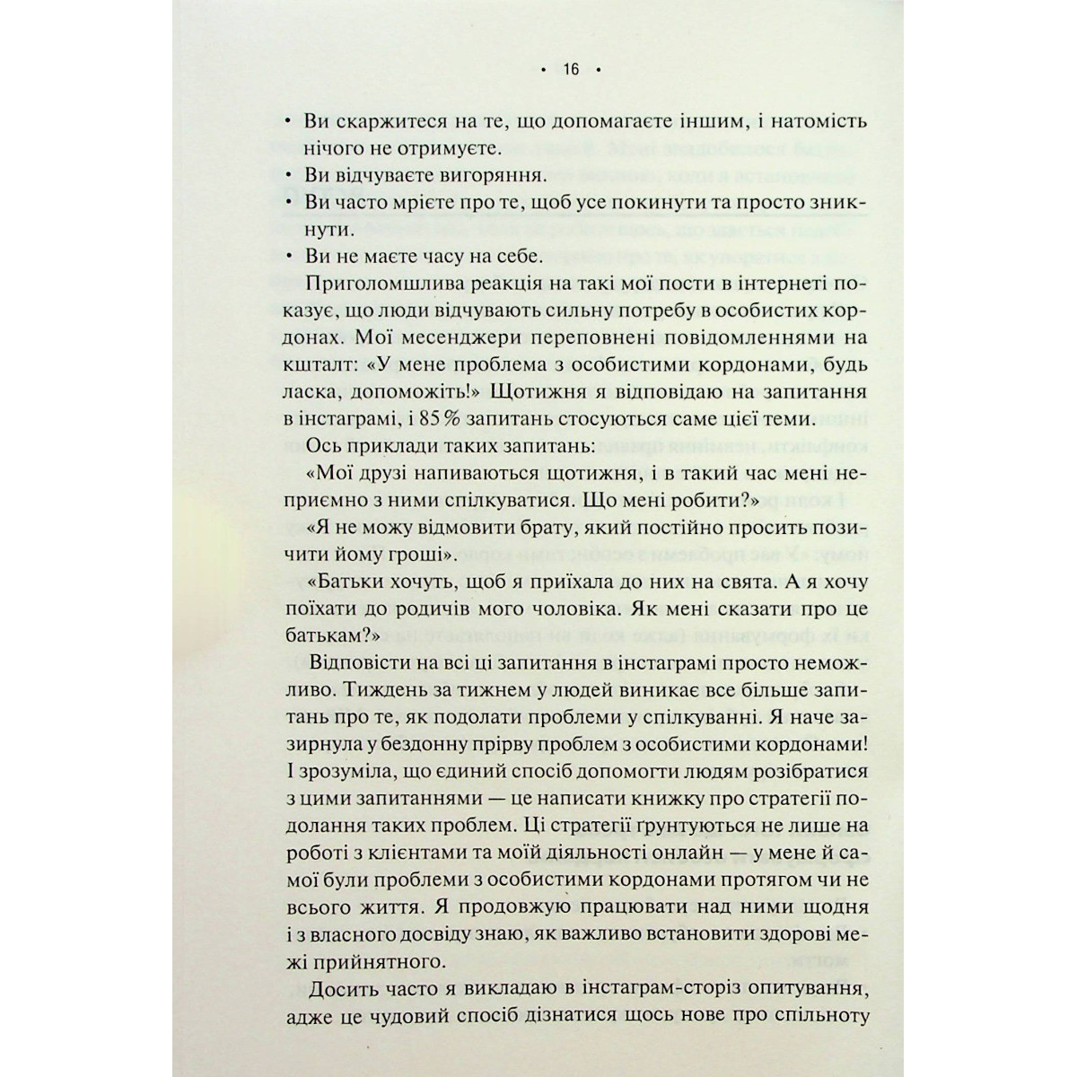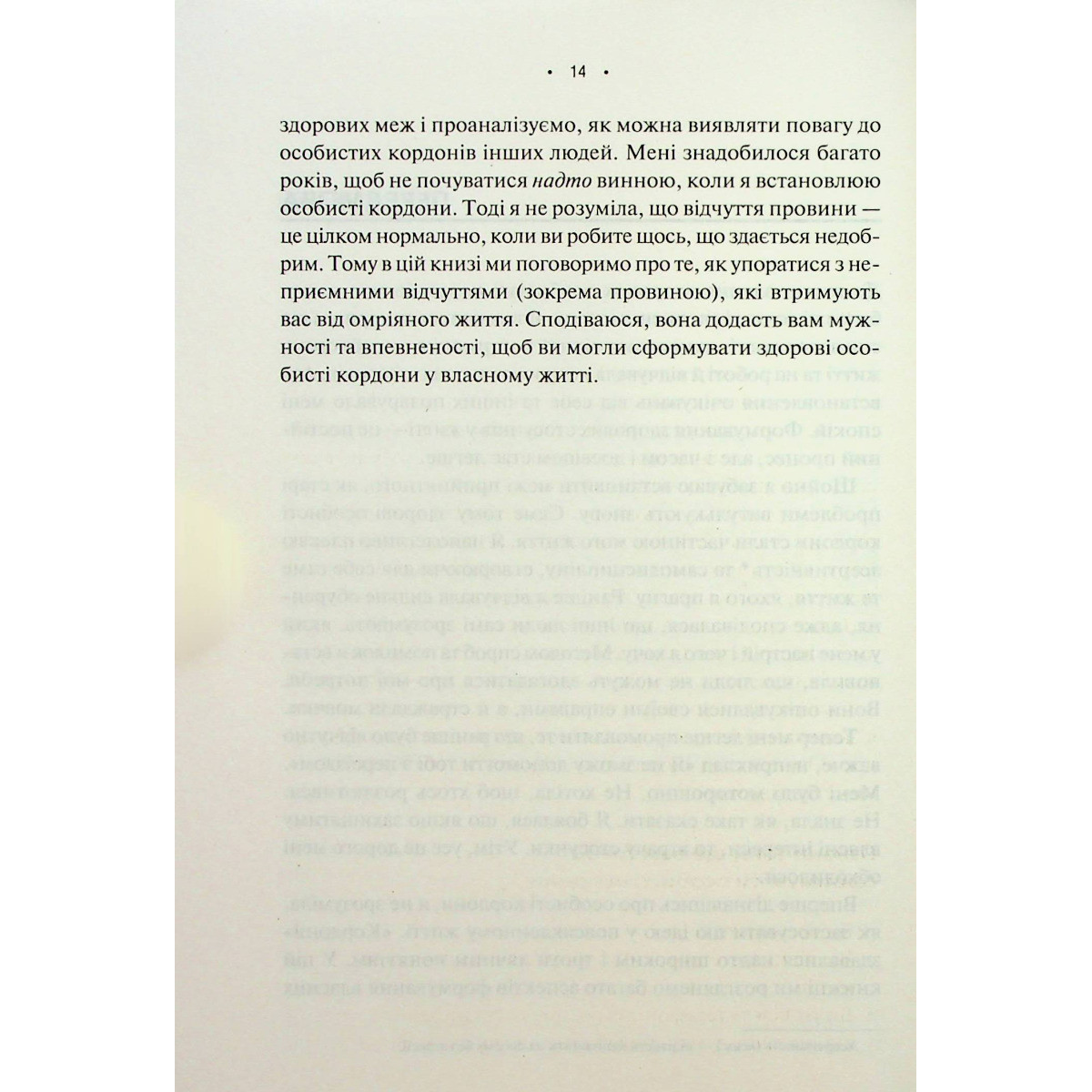Час змінити правила гри. І встановити межі. Недра Тавваб зрозуміло і тактовно аналізує питання про те, що таке особисті кордони і які вони бувають, навіщо нам ці межі та як вони функціонують. Поради Тавваб допоможуть почуватися впевненіше, подолати комплекси, пропрацювати травми, усвідомити свої сили, повністю реалізувати власний потенціал і здобути омріяну свободу, чітко встановлюючи здорові кордони в особистому та професійному житті.