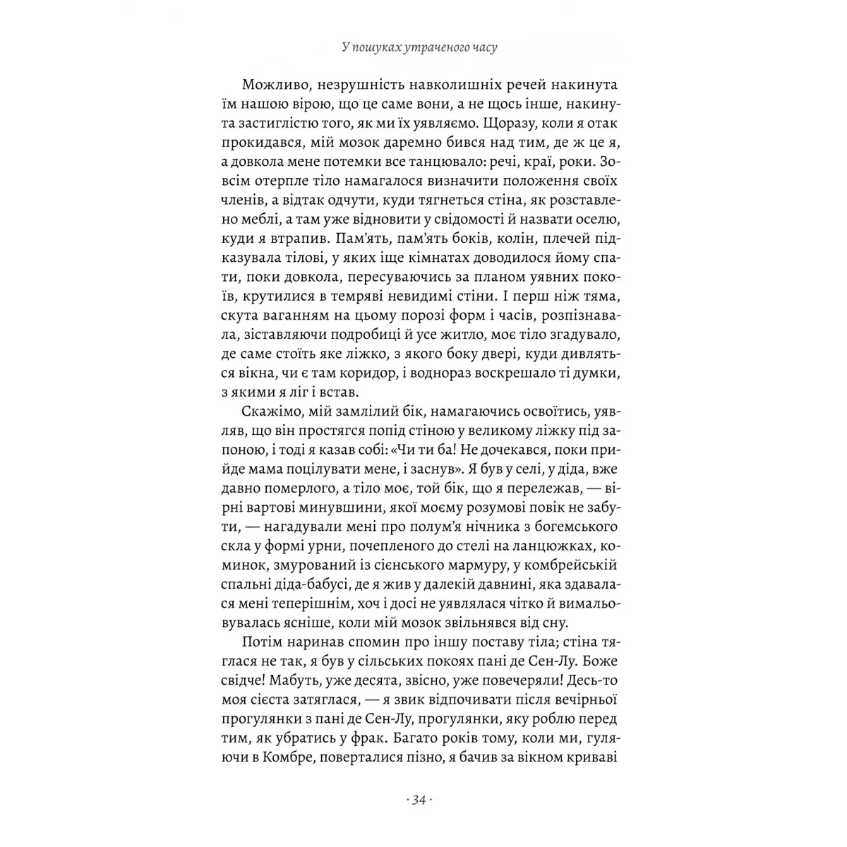 Марсель Пруст створив не белетризовану хроніку подій власного життя, а деталізований автопортрет внутрішнього світу митця, де звук, колір, смак і навіть запах пробуджують уяву й навіки поєднують текст із серцем читача.