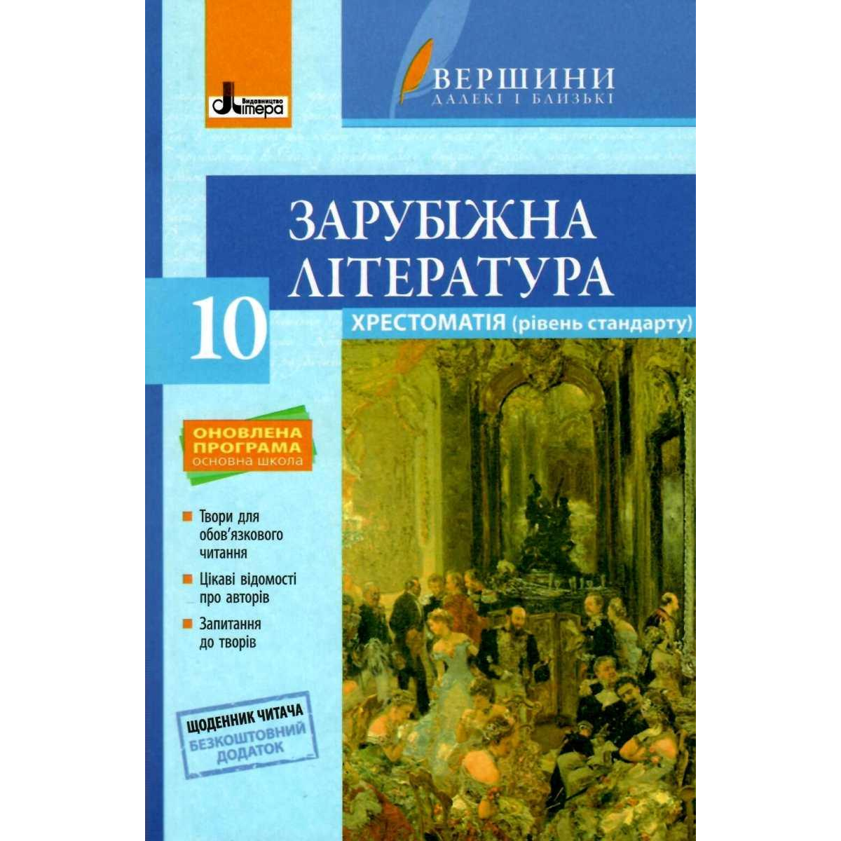 Хрестоматія ВЕРШИНИ. Зарубіжна література 10 клас Рівень стандарт+Щоденник читача ОНОВЛЕНА ПРОГРАМА
