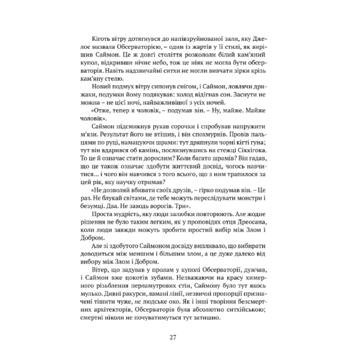 Хтось прочитає це захопливе фентезі, щоб розважитись і відволіктися, а хтось побачить у ньому асоціації із сучасністю і недвозначні історичні паралелі й нагадування про вічні цивілізаційні уроки: неконтрольована влада перетворює людину на звіра; найкращими правителями є ті, хто не хоче влади, але приймає її як важкий обов’язок.